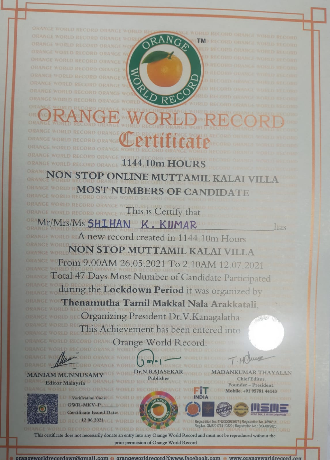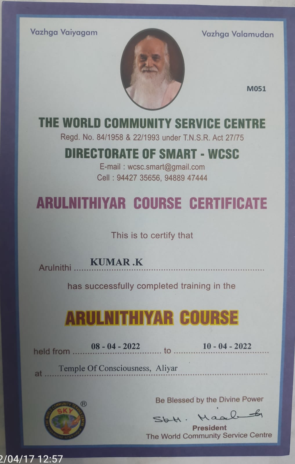 After that, in the same year 2011, with God’s Grace I started my own Institution DYNAMIC TRUST FOR SELF SEEKING – D.T.S. and made it recognized by our Tamil Nadu Government as a Trust.
