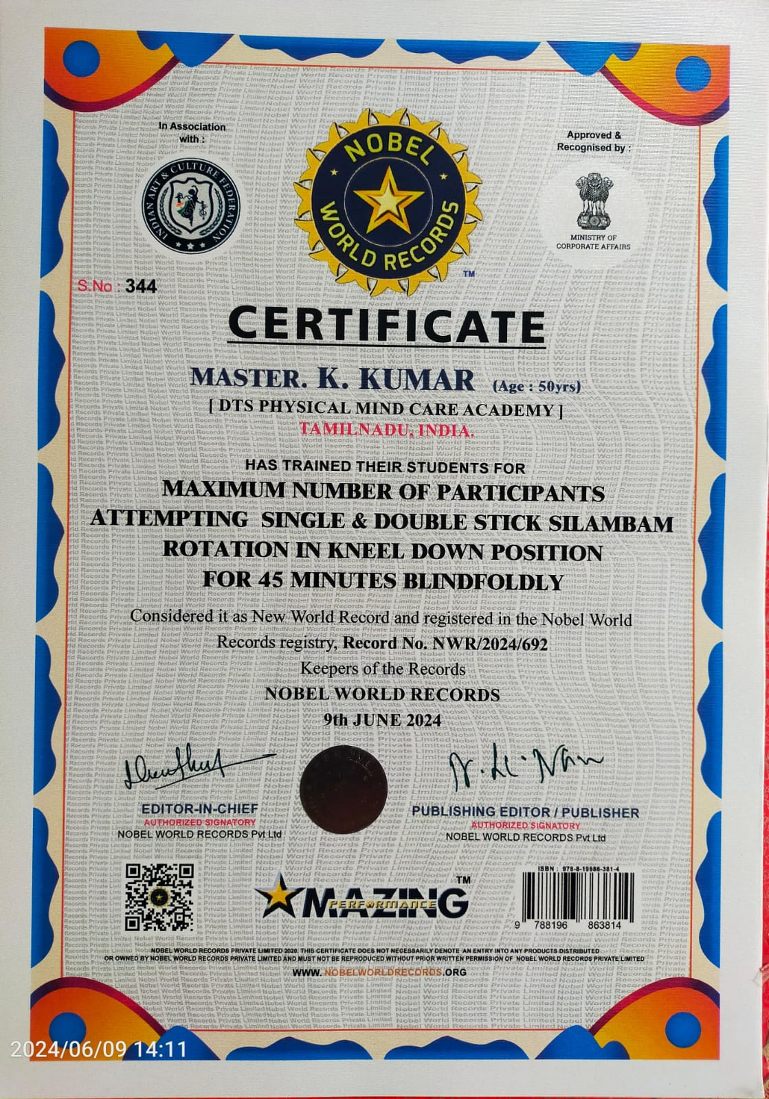 Earlier, during the years 2003, 2006 & 2009, when a Master from Japan came to India, I got training from him directly which made me more strong in my Mind as well as Body side.