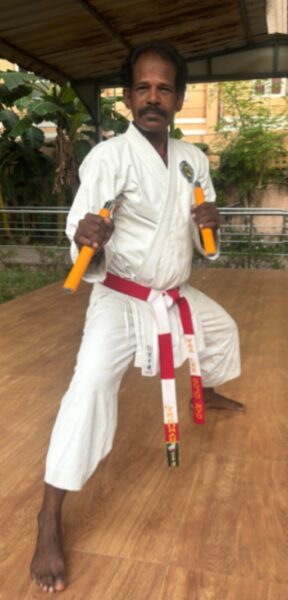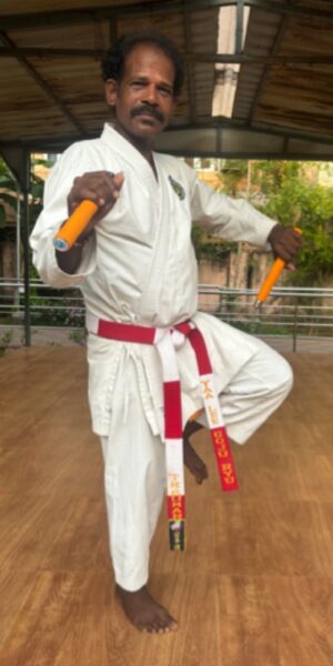 I am Shihan K.Kumar who possesses 6th Dan black belt in karate. I follow the gojuryu style which translates to hard and soft. My academy is the DTS physical mind care academy. DTS refers to the dynamic trust for self seeking. I have an experience of 30 years. I have written a book called as ‘ UNNAI NEE NESI ‘. Karate means weapon less just with bare hands. I also teach Kubudo which means defence fight with weapons. The academy’s objectives are to make people lead a healthy and peaceful life without any stress and worry, it ensures that the disciples are flexible, fit and that they perform their responsibilities correctly. More than Karate Silambam and Yoga, we teach them about good values that are to be imbibed during the course of life. I take great pleasure when I say that my students have won many national awards for their excellence in Karate Silambam and Yoga. Thankyou…